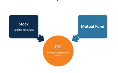 ETFs are an investment medium which combine the features of mutual fund & stock investing. On one hand, investors can buy an ETF with an aim to get underlying Index returns at relatively low cost (low expense ratio) and on the other hand they can trade in an ETF like a stock at live NAV, to benefit from intra-day volatility, if desired.
